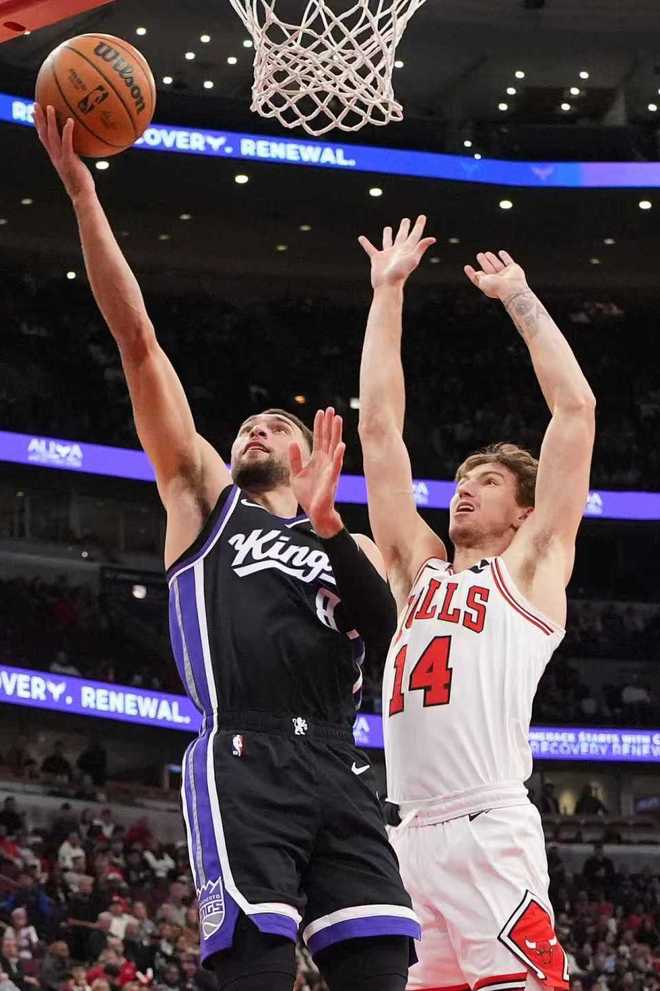 次节比赛,国王延续进攻火力连续两节单节得分30+,拉文、小萨博尼斯与蒙克内外开花持续得分。前两节比赛,国王45中29超过6成准星,全队已经3人得分上双,拉文10中7达到16分,小萨博尼斯12+5+3与蒙克11分。公牛第二节比首节少得到10分,全队也是3人得分上双,布泽利斯17分、吉迪12+4+6与赫尔特10分,国王单节31-26净胜5分,上半场结束国王64-62反超公牛2分。 中场休息回来,公牛在布泽利斯、吉迪与武切维奇攻传结合表现引领下,他们第三节疯狂起势连续进攻压制国王,尤其是第三节疯狂轰下39分。国王同样多点开花应对,但难以阻挡公牛的持续攻势,国王单节27-39输掉12分,三节结束国王91-101被公牛反超10分。前三节比赛,拉文20分与小萨博尼斯14+8+5,引领国王5人得分上双,布泽利斯25分与吉迪14+7+11,引领公牛4人得分上双。