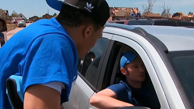 时间回到2013年5月,俄克拉荷马遭遇史上最大龙卷风袭击,所到之处一片狼藉。 远在家乡的杜兰特立即捐赠了100万,表示自己迫切想回去看看。 殊不知,另一边的威少已经拄着拐杖来到现场。 那时他刚刚做完半月板手术。 莫说走路,连下地都困难。