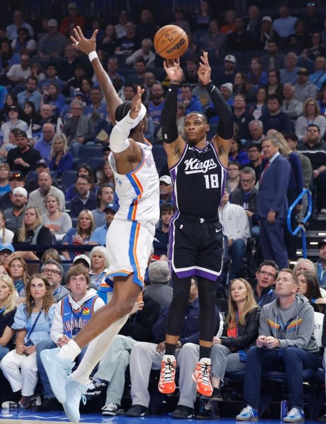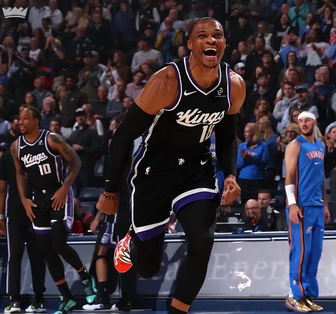 最终,在新赛季正式开始之前,萨克拉门托国王队向威少伸出了橄榄枝,最终用一份360万一年的无保障底薪签下了威少。遥想几年之前,威少还是超级明星,拿着几千万美元的顶薪。现在却只能拿到一份连保障都没有的合同,人们对于威少的遭遇还是挺唏嘘的。 身价的暴跌,说明现在NBA联盟里的绝大多数球队,对于威少都是不太看好的。不过,新赛季开始短短几天之后,威少却用自己的实打实的表现,向所有人证明,他依然是非常有实力的。 北京时间10月29日,2025-26赛季NBA常规赛继续进行。在今天的一场西部球队之间的对话中,国王以101-107不敌雷霆。
