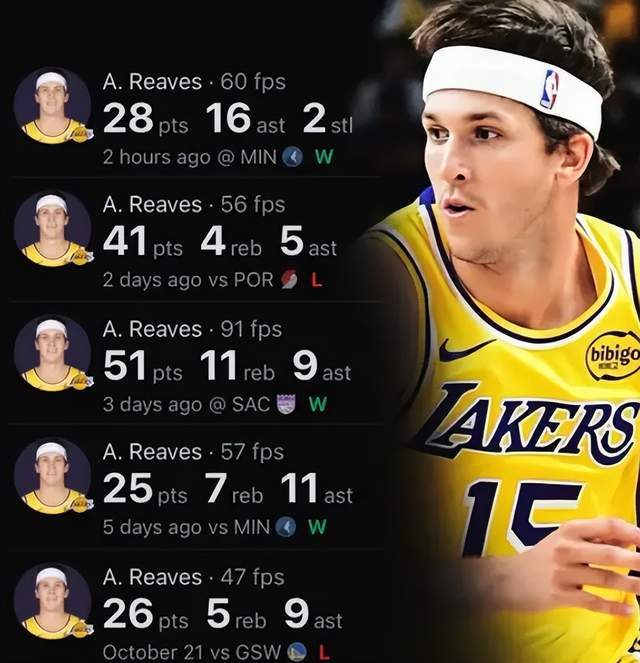 根据数据统计,里夫斯在最近三场比赛中,交出一份40分10助攻的场均数据单,一举成为湖人自1970年韦斯特之后,第二位连续三场常规赛中打出场均至少40+10的球员,而在此之前,里夫斯已经在赛季第二战打出单场11次助攻。 新赛季至今,里夫斯累计得到171分50助攻,成为湖人史上第一位在赛季前五场比赛中至少得到150分50助攻的球员。 这两项能力的暴走增长,足以说明里夫斯的价值,现在的他已经并非单纯的持球单打型球员,逐渐开始朝着球队核心方向前进。从这个视角来看,这可能也正是近期各家媒体开始越来越看好全员健康的湖人的原因所在。