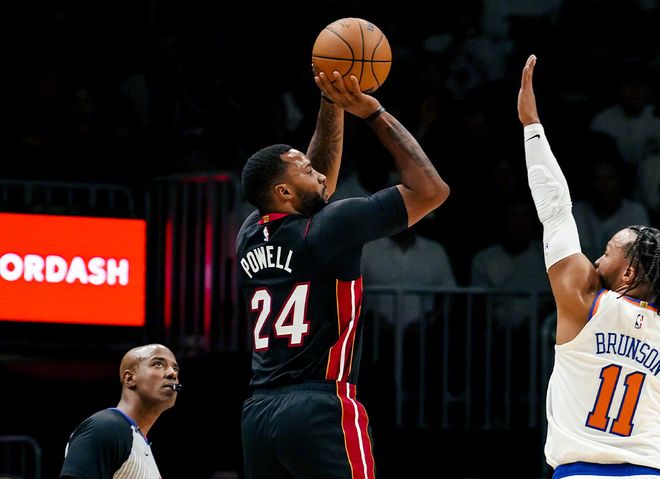 场均24分7.3篮板3助攻2抢断,三项命中率达到了47.7%+50%+91.3%!而热火在鲍威尔带领下,已经做到全队7人场均得分上双,就连阿德巴约都有继续成长的势头。这种潜移默化的改变很微妙,但正如维金斯接受采访时所说:自从来到球队,鲍威尔表现就很棒,他是特别的天才,每晚都展现了自己的实力。而快船随队记者艾斯纳沙里也感慨:我早知道他会在热火爆发。别的不说,单就热火首秀拿到28分,就已经超越巴特勒、奥尼尔、韦德等球星和名宿。鲍威尔自己有实力,而且上赛季在乔治离队后,他在哈登身边被练出来了。