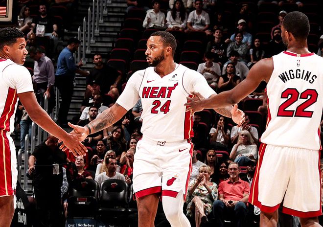 包括替补席上的保罗也早已进入下滑期,能控场,但没有破局能力,防守也直线下滑。按这种方式打下去,快船内部一定要出问题的,哈登上赛季那么辛苦都没喊过自己累,本赛季打勇士时已经不满教练组安排了。而在东部,还有一支球队很容易被忽略,就是热火。热火在揭幕战中,4分惜败魔术,按照美媒预测,新赛季热火大致在东部8-10名的位置,附加赛水平。但紧跟着热火爆发了:打西部季后赛常客灰熊,146-114;打夺冠热门尼克斯,热火115-107;面对鱼腩黄蜂,热火干脆利落再度轰下144分!