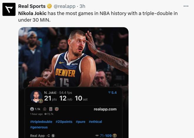4连击三双追平威少,约基奇历史第一!掘金3优势