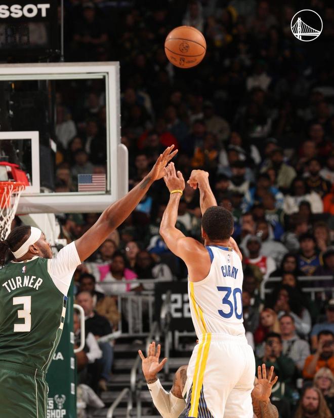 雄鹿队,特纳12中7,三分球6中3砍下了17分7板3助2帽,打出了赛季最强一战。科尔安东尼15中7得到了16分3板2助、特伦特14中4,三分球7中2贡献了13分2板3助4断、波蒂斯12分5板2助、库兹马10中4得到10分8板4助、AJ-格林10分2板、普林斯10分1助、科菲3板、哈里斯1板2助。 大爆冷门!勇士不敌雄鹿 金州在本赛季展现了强大的即战力,并被视为夺冠大热门。而在字母哥缺战的情况下,雄鹿实力被严重削弱了。除了特纳之外,雄鹿的首发主要轮换,都是角色球员。能够击败球星云集的勇士,密尔沃基众将可谓是上演了以弱胜强、大爆冷门的好戏。 库里27+6 勇士队超级巨星斯蒂芬库里,在此役迎来爆发。库里在35分钟的时间里,19中8,三分球10中4,罚球8中7,狂轰27分6篮板4助攻1抢断的全年数据,也有全场最多的5次失误。 库里跳投