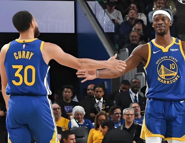 摊开本赛季的球队数据来看: 库里场均27分3.8篮板5助攻,投篮命中率51%,三分命中42%;而在他之外,巴特勒交出场均21.4分4.6篮板4.8助攻的全面表现,最意外的是,截止目前,他的三分命中率更是高达57.1%。 作为以前被调侃不会投三分的硬汉,现在却成了球队外线效率第一梯队的精准投手,属实是相当意外。把比赛样本放大,自巴特勒加盟勇士以来,库里+巴特勒二人交出的战绩为28胜7负,胜率高达80%,胜率高居全联盟第一梯队。