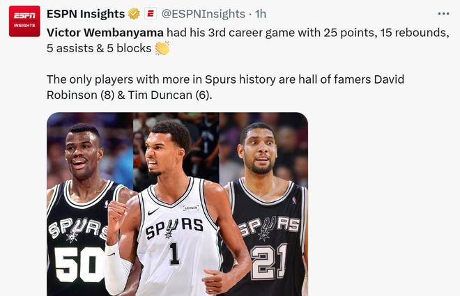 151分24盖帽,文班历史首人!马刺队开季5连胜3大