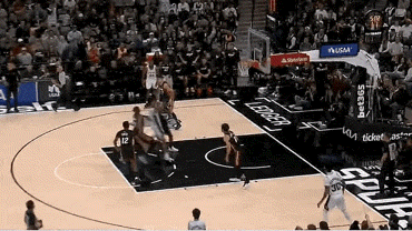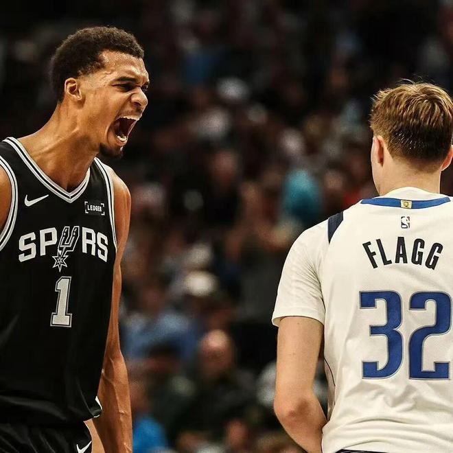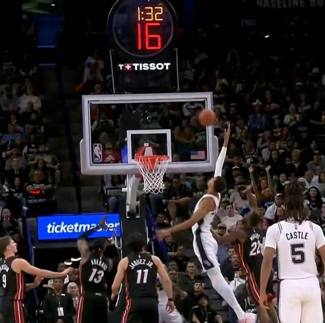 小杨:嗯,对,还有... 热巴不只是嘴上说说,挑战马刺之际 阿德巴约底线突破,一步过掉了文班 但文班调转车头很快用地板油跟上来 却不曾想,热巴旱地拔葱直接隔扣!