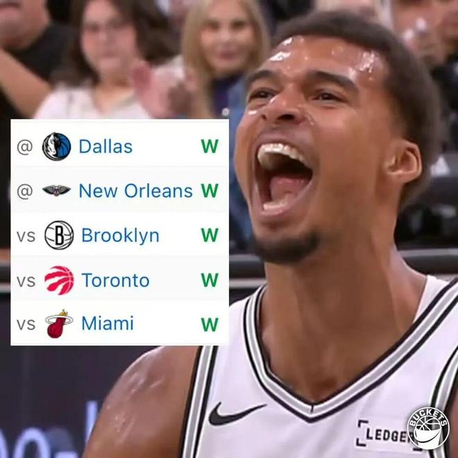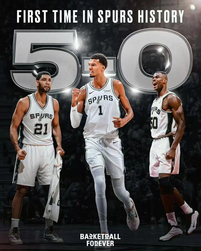 开赛后5连胜,高居联盟第一!! 这是马刺队史第一次拿到开季五连胜 即便是GDP时代,甚至也没有做到过 更何况,场下还坐着福克斯、索汗呢 完全体的马刺,我真的不敢想象啊~
