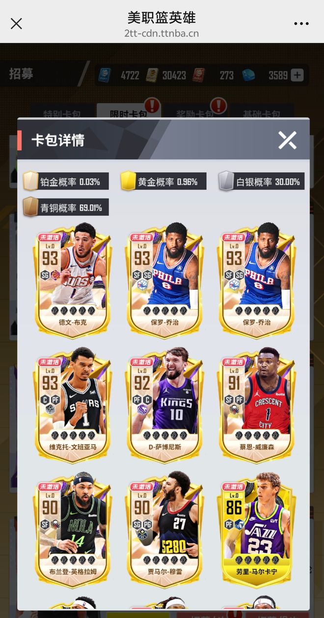 扫码进入游戏-招募-卡包商城,即可抽取文班铂金卡! |
