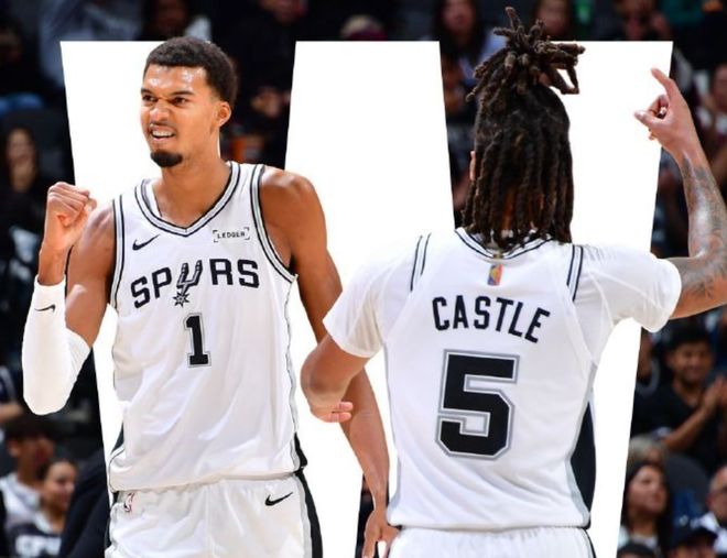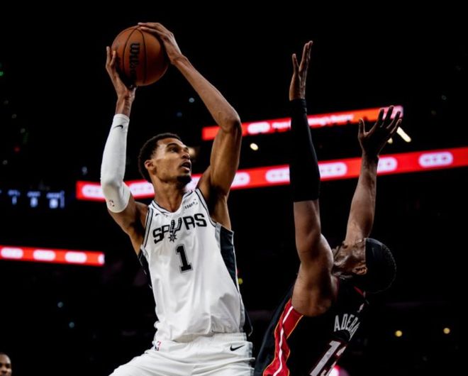 这一场比赛并不好打,热火队是本赛季的进攻强队,场均轰下联盟最多的131分,替补席上有哈克斯和丰泰基奥两个场均13分以上的得分手,整体进攻火力很强。此外,热火队场均送出联盟第2多的9.8次封盖,禁区护筐能力也是一流的。 如此一来,就需要马刺队或者文班亚马更加努力。现在看起来,他们确实是表现不错。文班亚马在本场比赛里继续神勇发挥,力压阿德巴约。尽管被阿德巴约拿下了31分10篮板,但是文班亚马轰下27分18篮板,看上去更胜一筹。 此外,文班亚马多次在比赛中限制住了阿德巴约的进攻,他送出6次助攻、1次抢断和5次封盖,展现出了无与伦比的禁区统治力。最终,马刺队以107比101击败了热火队,拿到了开季5连胜,这是他们队史首次在赛季刚开始保持5连胜,确实是非常不错。