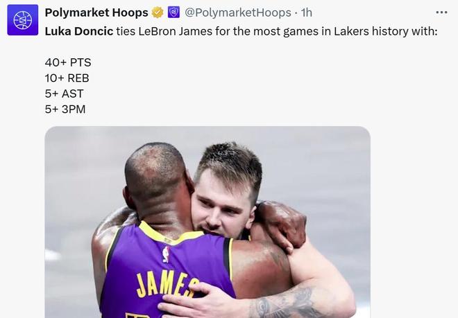同时追平詹姆斯成为湖人队史单场至少拿到40分10篮板5助攻5三分场次最多的球员,并且按照东契奇的火热状态,他很快就将反超詹姆斯独占这一纪录,毕竟他上个赛季才加入湖人。