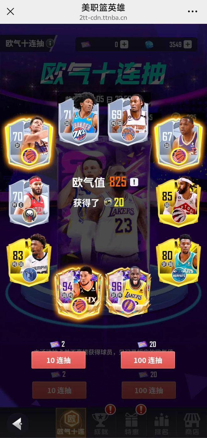 全新活动!NBA英雄2欧气十连抽来啦 一次你就有机会登上欧气or厄运榜一 保住排名就能将94铂金自选卡拿下 约老师还是库里老詹?顶级球星全任选