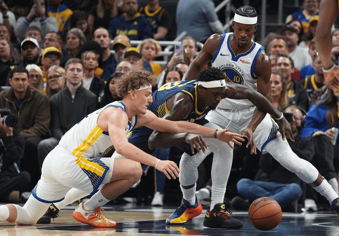 另一边的步行者,不瞒你说,对勇士之前还一把没赢过,0胜5负排名东部垫底。这也可以理解,毕竟哈利伯顿赛季报销,内线核心特纳悄然离队,步行者新赛季就是奔着摆烂去的,当然连续输太多局也不太好,还是尽量先赢一局吧? 本场比赛,勇士这边派出的是,巴特勒,库明加,追梦格林,波杰姆斯基,库里;步行者这边派出的是,内史密斯,西亚卡姆,昆顿杰克逊,以赛亚杰克逊和贾雷斯沃克。 首节比赛开始,步行者跳球获胜,内史密斯三分出手一击命中,打进本场比赛首个进球;库明加高速推进,持球上篮也为勇士队开张。
