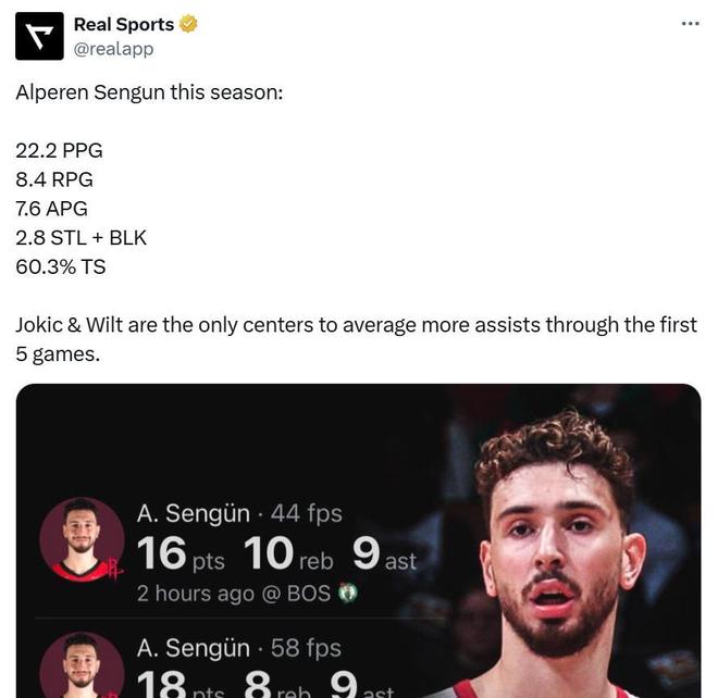 同时申京开季前5场场均送出7.6次助攻,仅次于约基奇与张伯伦高居NBA历史第三,交出了火箭队期待中的组织与策应表现。