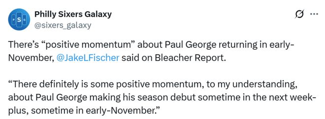 决胜时刻76人队打出8-0攻击波追分,也是埃奇库姆、马克西携手格莱姆斯三名外线得分手携手完成,恩比德在进攻端的作用完全可以被取代。 更为棘手的是,根据记者Jake Fische报道,在未来一周或者11月的某个时间点,乔治也将回归,这意味着,埃奇库姆的球权会被进一步压缩。
