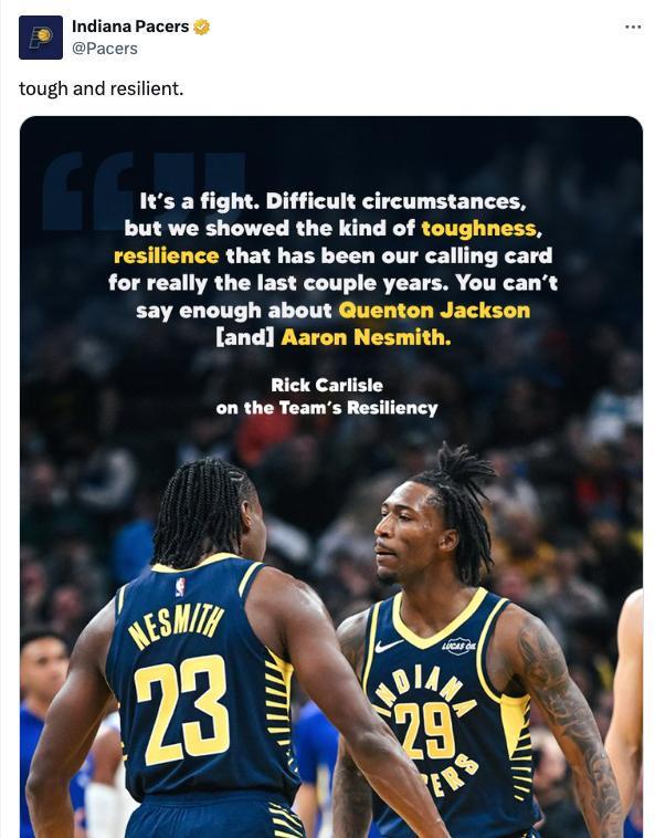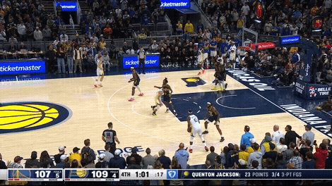 今天为了守住主场,步行者能用的人几乎全上,搭上3个双向合同球员硬是凑出了12人轮换,昆顿-杰克逊连续第二场首发,泰隆-彼得和雷杰-丹尼斯也都替补出战,刚刚用困难特例签来的厄尔直接登场救火也打了6分钟——这场比赛到最后5秒才分出胜负,压根就没有垃圾时间。 勇士这边核心俱在,但优势不大,上半场仅领先个位数,第三节一度被步行者反超大半节又重新夺回优势,第四节勇士前半节还领先11分,被步行者突然的爆发打了一波21-5,饮恨低头离开。 昆顿-杰克逊,出战31分钟,16投10中,三分球4投3中,罚球3投2中,砍下25分6篮板10助攻3抢断。全场在库里、追梦、巴特勒面前化身极速黑马,来回穿梭势不可挡,而且全场没有任何失误。
