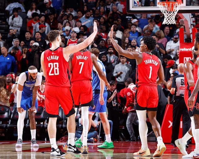 今天对阵独行侠,即便是杜兰特手感不佳,全场18投仅6中,三分线外更是8次出手只命中2球,但凭借申京和阿门-汤普森的发挥,他们依然有惊无险的拿捏了独行侠。