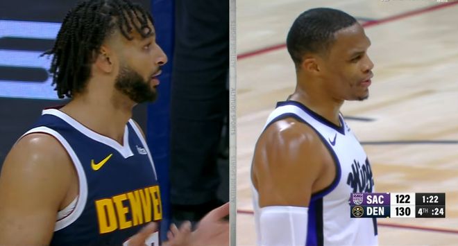 神龟要是在掘金的替补席,上来打打挡拆,效果肯定会完全不同。现在面对掘金队,他其实是最渴望证明自己的一个,国王今年肯定是没有什么成绩方面的要求了,上去正常打让威少打得开心,其实也就可以了。果然全场大威少有三分,有突破,有罚球,有篮板还有传球,末节还剩3分钟,他还在突击上篮咬住比分。最终26分也是国王全队的最高分,不得不说,威少现在的能力留在国王确实是浪费掉了,有点可惜。
