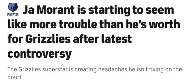 然而,在输给湖人队之后,莫兰特抨击了伊萨洛和他的教练组。当记者问他比赛中出了什么问题时,他多次回答让他们“去问教练组”。在被问及灰熊队如何才能取得不同的结果时,他说:“老实说,根据他们的意思,可能是不让我上场。这基本上就是他们的意思。没关系。”此后,他因“对球队有害的行为”被停赛一场。 莫兰特最近的表现并不像一个巨星。无论你是看得分数据还是高级指标,数据都表明,自2022年达到巅峰以来,莫兰特的表现一直在慢慢下降,场均得分从27.4分一路下滑至20.8分,连续4年下降。虽然莫兰特只有26岁,但这些数据不由让人觉得他已过巅峰,处于下降的通道中。