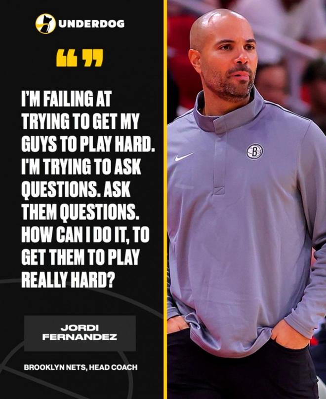这样一来,篮网队新赛季的目标十分明确,继续无底线摆烂的同时,尽可能培养这5名首轮秀。 结果开季至今,篮网队在手握5个首轮秀,明确摆烂的情况下,主帅却硬是连续交出谜之操作,大有与球队管理层意愿对着干的意味。 开季至今,篮网主帅费尔南德斯似乎不清楚自己的责任与球队的处境,硬是放着5个首轮秀不重用,反而大量使用托马斯、曼恩、克拉克斯顿、马丁这些已经证明自己没有可能成长为建队核心的即战力球员。