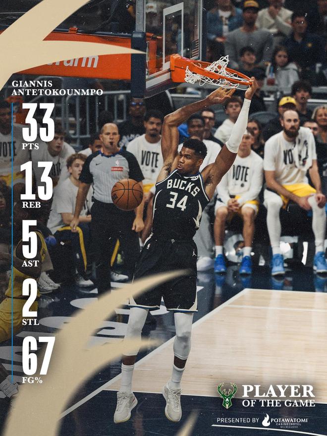 NBA常规赛继续进行,雄鹿奔赴客场与步行者展开对决,两大宿敌的较量,充满了看点。密尔沃基惜败国王,此役志在强势反弹。印第安纳击败勇士,才获得赛季首胜。该场比赛,哈里伯顿、内姆哈德、马瑟林、托平、麦康奈尔、琼斯6人伤停,步行者人员轮换紧张。卡莱尔的首发五虎是西亚卡姆、内史密斯、以赛亚杰克逊、昆顿杰克逊与沃克。小波特继续伤停,道格里弗斯的首发五虎是扬尼斯阿德托昆博、迈尔斯特纳、罗林斯、特伦特与AJ格林。字母哥与西亚卡姆的强力锋线对决,特纳对阵旧主,都让球迷们对本场比赛充满了期待。 字母哥33+13献压哨绝杀,创历史第1神迹,雄鹿掀翻步行者!特纳9分5盖帽,西亚卡姆32+8! 全场比赛回顾 首节开打,字母哥抢断后上篮得分,特纳2罚1中,沃克被封盖,以赛亚杰克逊补篮得分。内史密斯2罚全中,西亚卡姆与特伦特、特纳、AJ格林在外线对轰,字母哥被犯规,裁判认定内史密斯一级恶意犯规,字母哥2罚不中。罗林斯失误,特纳大帽内史密斯,字母哥2罚全中。以赛亚杰克逊篮下得分,特纳轰进远投,字母哥反击暴扣。卡莱尔请求暂停,以赛亚杰克逊暴扣,特伦特延续外线火热手感,雄鹿取得11分领先。 字母哥罚球