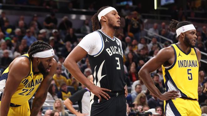 末节决战,科尔安东尼、库兹马与皮克特对射远投,西亚卡姆单打取分,波蒂斯与沃克在禁区斗法,库兹马2罚全中,沃克中远距离得到5分还以颜色。科尔安东尼、格林相继外线得手,西亚卡姆回敬2+1。格林继续外线发难,西亚卡姆上篮得分,波蒂斯轰进三分球,雄鹿取得12分领先。以赛亚杰克逊勾手得分,谢泼德空接打进,字母哥连投带罚得到3分还以颜色。 沃克命中远投,以赛亚杰克逊打成了2+1,雄鹿请求暂停。以赛亚杰克逊暴扣,字母哥2罚不中,西亚卡姆2罚1中,道格里弗斯请求暂停。西亚卡姆上篮打进,步行者打出了15比3的攻势追平比分,印第安纳看到了逆转取胜的希望。特纳上篮打进,为雄鹿打破僵局。西亚卡姆外线不中,特纳助攻特伦特轰进远投,密尔沃基稳住局面,卡莱尔请求暂停。 字母哥冲击禁区