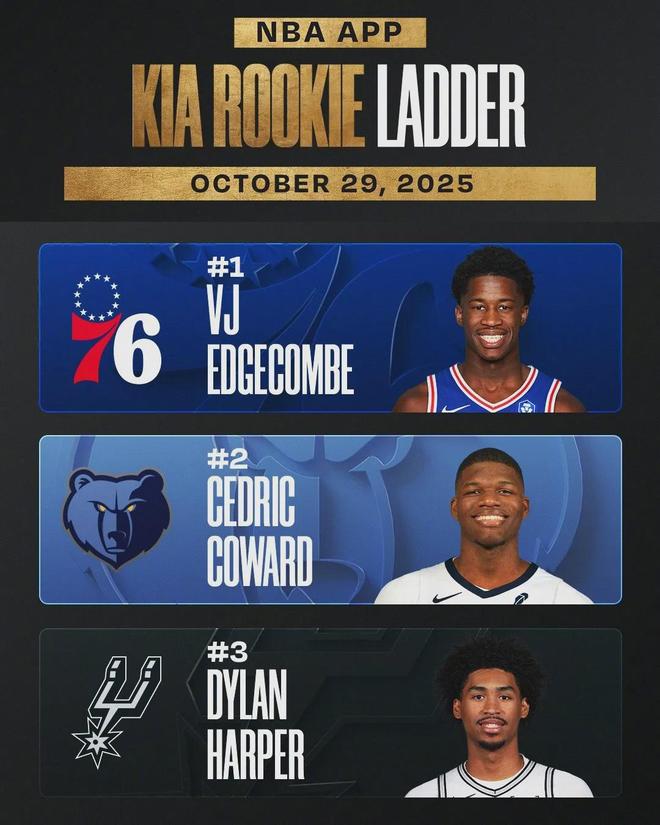 探花秀埃奇库姆为76人打了6场比赛,均是首发。场均出战39分钟,得到20.3分5篮板5助攻1.5抢断2失误,三项命中率:49.5%,42.1%,82.4%。场均正负值+6.8,联盟第36位。场均得分、助攻和抢断,均是2025届新秀第一名。