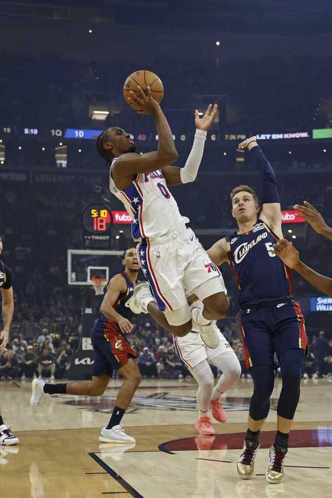 数据统计 骑士:米切尔46分4板8助创赛季新高纪录、阿伦24分10板3断3帽、莫布利23分5板3助2帽、梅里尔14分、泰森10分5板3助2断、加兰8分2板4助。 76人:马克西27分7板9助、格莱姆斯27分3板3助、乌布雷19分3板2助2断、沃特福德16分3板6助2断、德拉蒙德13分13板。 比赛回顾 76人上一场客场111-113惜败公牛丢东部第一,骑士上一场主场117-109战胜老鹰。本场76人缺少恩比德、乔治、麦凯恩与巴洛,骑士缺少斯特鲁斯与亨特。加兰复出迎来赛季首秀,首节开局米切尔与加兰连续命中三分,引领骑士取得梦幻17-4领先。骑士之后继续内外开花压制,逐步扩大30-13领先优势,76人略有反扑追分。首节骑士29中15超过5成准星,其中三分16中7,米切尔5中4命中3记三分得到15分,莫布利8中5命中2记三分得到12分,两人联手得到27分已经持平76人全队得分,首节结束骑士41-27领先76人14分优势。