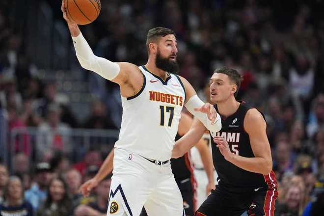 约基奇33+15+16掘金力克热火 热巴伤退维金斯22分引