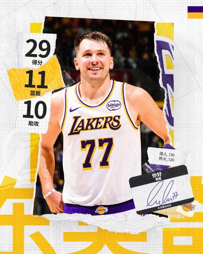 湖人130-120热火 东契奇29分11篮板10助攻 里夫斯26分4篮板11助攻4记三分 拉拉维亚25分8篮板3助攻