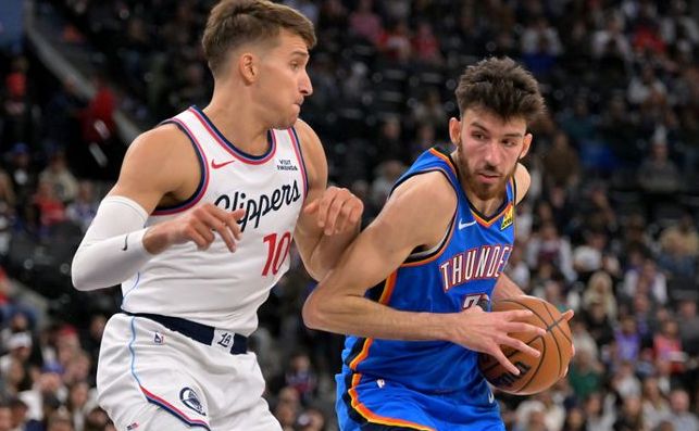 附两队数据:快船,科林斯17分4板1助、琼斯16分4板2助、洛佩斯12分2板、博格达诺维奇11分6板4助2断、祖巴茨7分7板2助2断、邓恩6分5板3助2断、尼德豪泽5分2板、克里斯蒂5分2板、巴图姆3分1板3助、保罗1板3助;雷霆,乔22分3板、华莱士12分3板1助、维金斯12分2板2助、霍姆格伦11分5板3助3帽、哈尔滕施泰因10分7板3助4断、米切尔8分4板3助4断、卡鲁索8分1板3助2断、多特6分3板、杰林-威廉姆斯3分5板。声明:个人原创,仅供参考 |