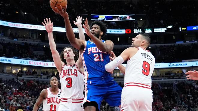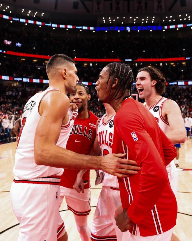 不过,尽管库里、巴恩斯、吉迪发挥神勇,但是亚历山大才最应该当选今日的NBA最佳球员。 吉迪29+15+12创3大神迹,巴恩斯暴走!对不起库里,今日最佳是亚历山大! 公牛与76人两大豪门,展开了东部第一的排位战之争。此役,马克西率队一度帮助费城取得了24分的领先优势。不过,顽强的芝加哥众将在吉迪、武切维奇的带领之下,并没有放弃追分。依靠着末节的进攻狂潮,公牛得以不断蚕食分差。最后时刻,马克西、恩比德连续单打不中,吉迪助攻武切维奇轰进远投,公牛准绝杀了对手。格莱姆斯错失了反绝杀远投,最终,芝加哥以113比111主场险胜过关。 吉迪、武切维奇与队友在场上庆祝