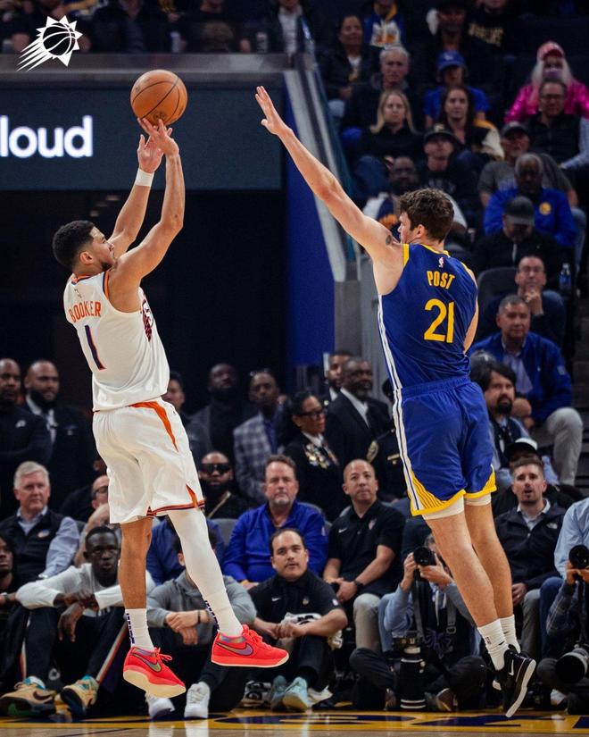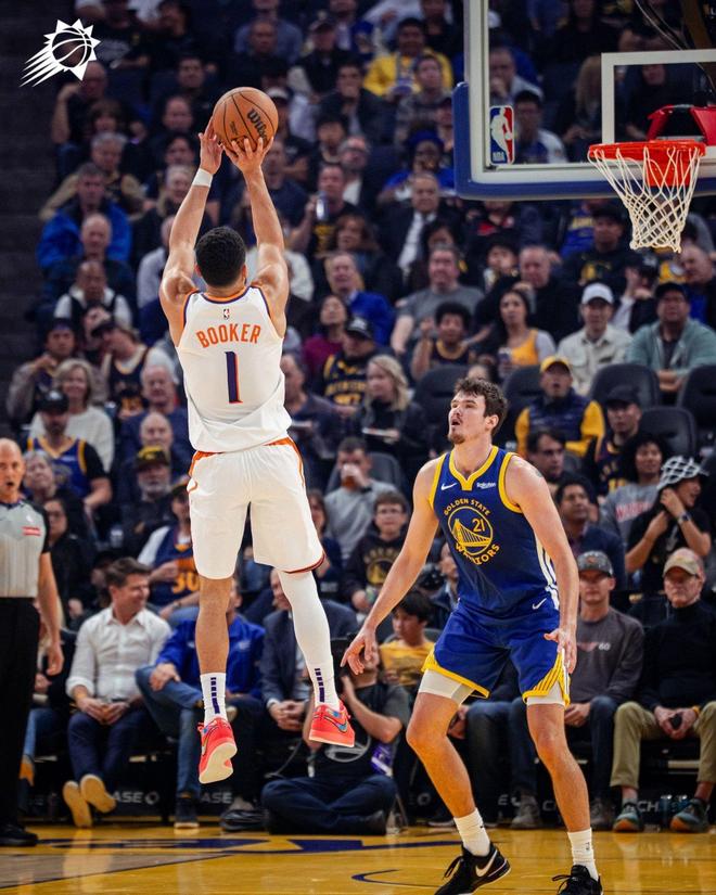 下半场,穆迪顶替受伤的巴特勒出战。穆迪在末节独得10分,为勇士取胜立下了汗马功劳。作为两队替补席得分最多的球员,穆迪率领勇士的第二阵容在得分上以63比19,碾压了对手的替补球员,这也是勇士能够拒绝25分逆转的重要原因。 布克38+4 太阳队球星德文布克,可谓是拼尽全力,虽败犹荣。布克登场39分钟,24投13中,三分5中1,罚球11中11,怒砍38分3篮板4助攻1抢断。布克以54%的命中率轰下了全场的最高分,还是此役走上罚球线次数最多的球员。同时,布克的罚球命中率为100%。 布克跳投