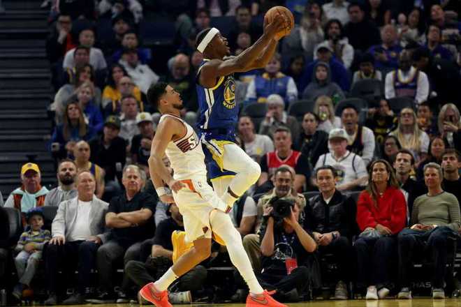 次节比赛,勇士连续两节单节轰下30+得分,太阳也是首次单节得分30+展开对攻,太阳追到差10分。穆迪三分开火引领一波8-0攻势扩大18分优势,勇士内外开花继续扩大55-33领先优势,希尔德三分命中,引领勇士继续扩大60-35领先优势。太阳回敬一波14-8攻势追分,勇士单节35-30再赢5分,上半场结束勇士扩大68-49领先太阳19分优势。前两节比赛,勇士外线三分命中数13-5净胜8记三分多达24分,勇士3人得分上双,库里4记三分12分、穆迪3记三分13分与希尔德3记三分11分,太阳仅布克17分一人得分上双。