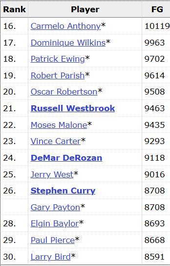本场比赛,勇士队当家球星斯蒂芬-库里出场33分32秒,23投9中得到了28分4篮板3助攻1抢断1盖帽,三分球12中5,罚球5中5,出现了2次失误和3次犯规,正负值为+7。 据官方统计,库里在本场比赛超越了加里-佩顿,成为了NBA历史上运动战进球数第26多的球员。在他身前的是杰里-韦斯特,两者大概有300记进球左右的差距。