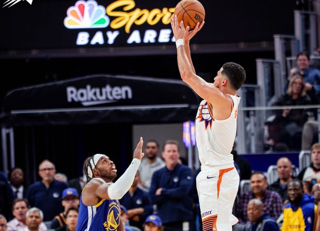 不过本赛季勇士基本盘还是很强的,当摆出库里+巴特勒+库明加+追梦格林+博斯特时,百回合能赢对手30.4分。站在教练组角度,就应该谁打得好,多给一些时间。太阳这边,开赛3胜4负,上一场刚刚爆冷击溃此前五连胜的马刺。首先,杰伦格林继续因腿筋伤势缺席,布鲁克斯也遭遇腹股沟伤势,就相当于布克带着上赛季一帮角色球员打。至于能不能赢球,就看三分球能不能打开局面,但布克对于球队的整体带动确实比较有限。勇士沿用熟悉的首发阵容,霍福德因脚趾伤势休战,简单回顾比赛。