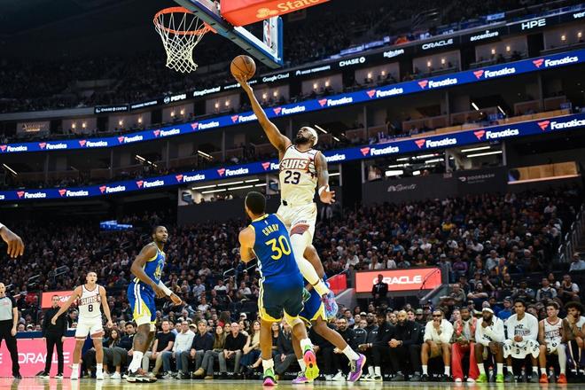 下半场易边再战,第三节上来库里先连砍5分,奥尼尔三分止血,布克中投,威廉姆斯面对库明加打2+1,科尔暂停。暂停回来,勇士多点开花重新稳住局面,又领先到了20分以上。布克反击给到邓恩打进,库里突破抛投造犯规罚球。布克继续爆发,罚球+三分追到76-88打停勇士。暂停以后,库里被换下,奥尼尔三分还有追到个位数,斯潘塞三分止血,两队陷入艰苦拉锯战。穆迪被犯规,太阳挑战,三节结束勇士92-83只领先9分了。