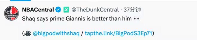 尤其是在禁区统治力方面,字母哥场均要在禁区拿到夸张的23.3分,超过1999-2000巅峰奥尼尔的场均22.5高居历史第一。 而后者也曾在直播回答网友提问时大方表示字母哥如今的统治力已经超过巅峰期的自己。 更是有美媒面对字母哥的表现,直言后者开季至今的表现让人想起了18年的灭霸詹。