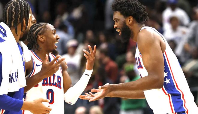 这一战,我彻底看清6个现实: 1、马克西再这样打下去,不仅要进全明星首发,还要拿MVP啊!他如今的打球方式,确实和巅峰哈登有几分神似。他的突破节奏极具迷惑性,变速变向能轻松撕裂防线,这和哈登当年的“欧洲步+节奏变化”如出一辙。3分投射也相当犀利;在组织串联上,马克西进步不少,吸引包夹后能精准分球,为队友创造空位机会,尽管末节的3分准绝杀不中,但是本场比赛马克西还是16中14,3分10中6,得到39分5篮板5助攻。 2、恩比德真是输球的罪魁祸首啊!恩比德本赛季的效率一直很低,在大比分领先的情况下,恩比德末节疯狂在外线射3分,防守端被武切维奇连续攻进几个!这期间马克西的被恩比德忽视了!显然恩比德需要认清一个现实,那就是,你现在是马克西的辅助,末节关键球,一定交给马克西来进行决策!全场比赛,恩比德21中7,3分6中1,得到20分6篮板。