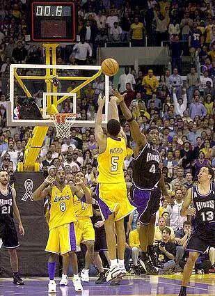 他有七个总冠军 当年看球,总觉得湖人的大前位置,是个短板——华莱士、邓肯、韦伯给三连冠湖人制造的麻烦,大多源自于此。 但霍里,这位大前,却……没人觉得是短板。 他看似是个只会投三分的前锋,可无论在火箭,还是在湖人,以及在马刺,却总能打出惊世骇俗的攻击火力,总能站在胜利的一边。 球迷对他最深的印象:他总在绝杀。 他在火箭,上演过两次经典绝杀;在湖人,绝杀国王,直接改变历史进程;在马刺,总决赛绝杀活塞,也是名场面——至于常规赛的绝杀,有点儿太多,我实在记不清了。 今天在这儿,说说01-02赛季湖人与国王的系列赛——那是个霍里的一记绝命三分,改变了系列赛进程,甚至影响到联盟格局的故事。
