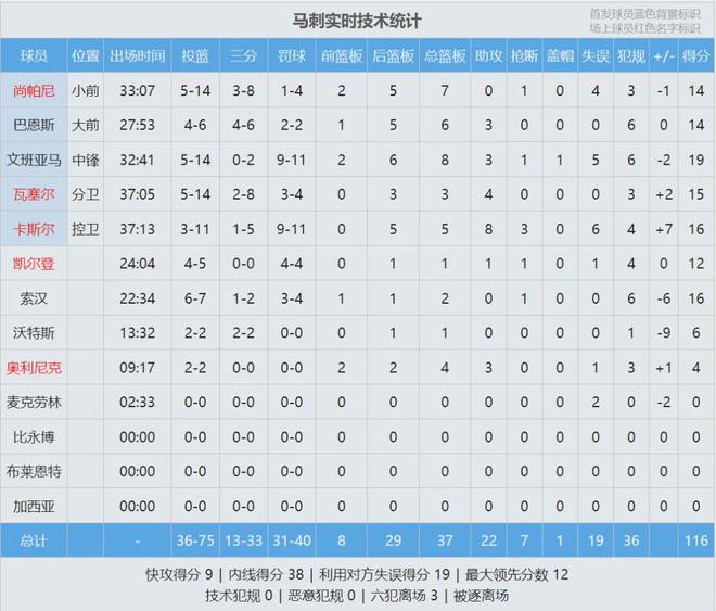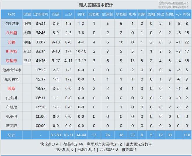 最后1.2秒,马刺落后2分。本来是湖人球权,结果斯玛特底线发球时踩线,球权给了马刺。最后0.2秒,尚帕尼想要补篮,裁判吹了拉拉维亚犯规。尚帕尼第一罚不中,第二罚故意偏出,队友没能补进。最终湖人118-116险胜马刺。 两队加起来66次犯规,84次罚球。马刺3人犯满,太惨烈了。湖人冲上西部第二,东契奇35分9板13助5断2帽、艾顿22分10板2帽。文班亚马19分8板3助,外加5次失误和6次犯规,连续两场迷失。最后看看数据,说说你的心情: