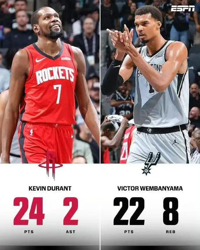 如果有个能控场的后卫,情况会简单许多 最终马刺主场121-110终结火箭五连胜 杜兰特拿到24分,文班则有22+8入账 光从数据看,文班似乎从超新星褪色了 殊不知,身后巴恩斯、尚帕尼合砍46分 证明马刺绝非单核球队,他们非常均衡