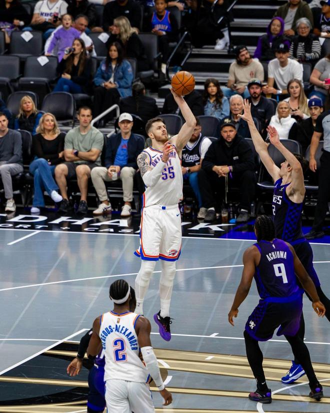 哈尔滕施泰因在次节发难,亚历山大率队在外线狂下三分雨,OKC不断掀起进攻狂潮。施罗德手感冰凉,拉文斗志低迷,萨克拉门托只能依靠威少、德罗赞、蒙克等人的单打零星取分。半场打完,雷霆以70比56领先,国王单节以24比40落后。 易地再战,亚历山大进入得分模式,哈尔滕施泰因在低位的单打也是无人可挡。国王进攻状态有所回暖,但是无法限制对手的多点开花。进入末节之前,雷霆以98比83落后。 米切尔单打施罗德