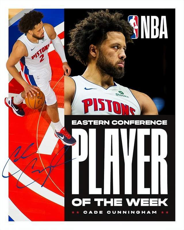 对灰熊的比赛,坎宁安20投12中,三分6投3中,得到33分5篮板8助攻。 对爵士的比赛,坎宁安28投13中,三分9投3中,又贡献31分3篮板10助攻 对篮网队的比赛,坎宁安砍下赛季最高的34分,同时送出10次助攻,投篮18中13,三分6中2。 对76人的比赛,他再度交出20+两双数据,在逆转获胜的比赛中得到26分11助攻,投篮20中9。 本赛季至今,坎宁安已斩获6次20+两双,仅次于约基奇(7次)。 目前活塞队以8胜2负的战绩高居东部联盟第一,创下自2005年以来最佳的开局10场战绩。 本次获得周最佳提名的球员如下——