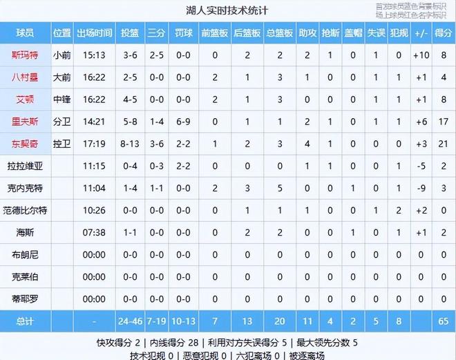 看数据:头号功臣是他! 头号功臣(里弗斯):8中5得17分1篮板2助攻1抢断,复出一上来还是将自己的特点展现出来,进攻端连续巨星哨,第二节后半段的发挥是湖人领先的头号功臣!
