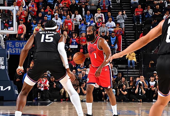 翻开本场比赛数据单,快船的问题很明显,主要就是来自于詹姆斯·哈登。 本场比赛全场出战40分钟,投篮15中4,三分10投仅2中,得到13分13助攻的两双数据,外加3次失误2次犯规。从数据单来看还算不错,赛后个人正负值来到-18,全场倒数第一。 这组数据背后,来自一个核心球员的完全失灵,甚至不夸张的讲,攻防两端几乎都没有多少正面贡献。即便传球组织能力依旧有亮点,但在这场比赛中,这点优势根本掩盖不了他的短板。而进攻之外,防守端表现更是毫无存在感。