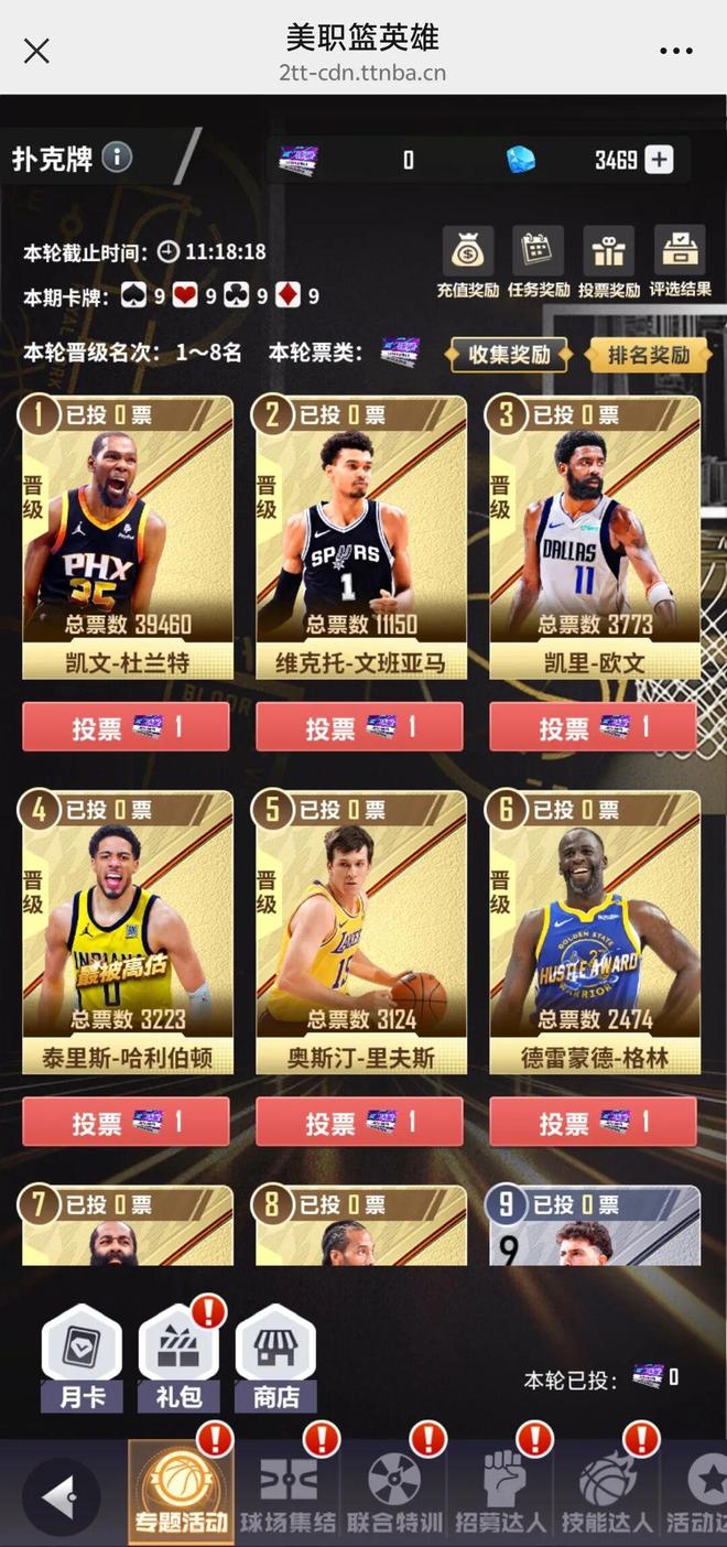 NBA英雄2票选本赛季扑克牌来了! 现役联盟球星,你会把票投给谁? 强强对决。阿杜欧文和文班,谁晋级! 每天免费1票!投票后还能赢取宝箱!