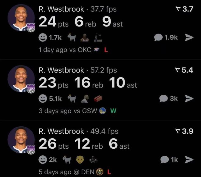 看完今天全部比赛的柚子 鉴于威少前几场打首发时那样炸裂的表现 一度连续3场打出20+5+5数据,老骥伏枥 成为NBA历史达成此成就里最高龄的控卫 所以,柚子对国王与森林狼一战预期甚高