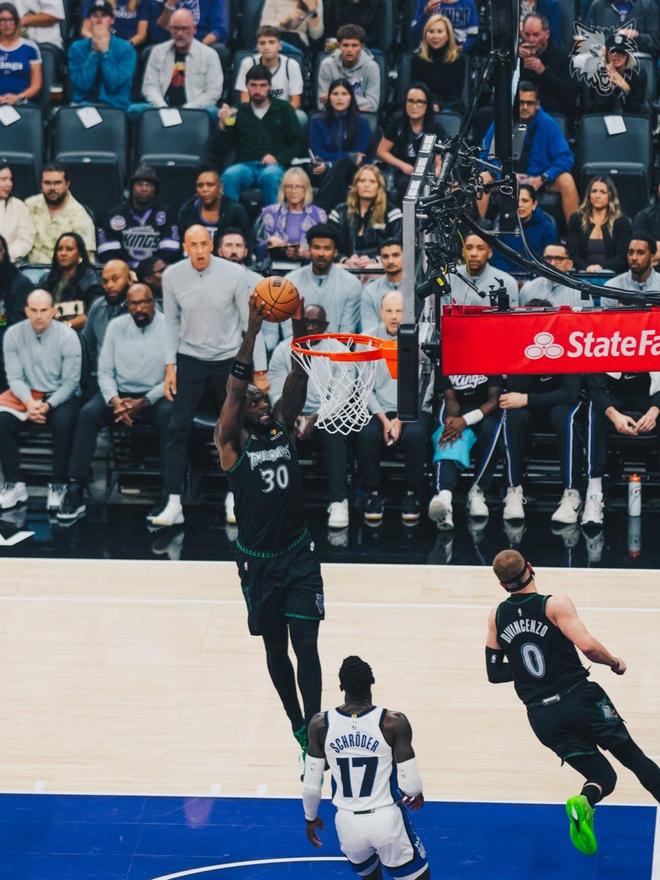 德罗赞、兰德尔各有跳投命中,麦克丹尼尔斯打成了2+1,萨博尼斯、拉文相继低位得分还以颜色。爱德华兹与萨博尼斯在篮下斗法,克拉克轰进三分球,爱德华兹2罚全中,里德上篮得分,明尼苏达取得28分领先。德罗赞外线命中,尤班克斯、德罗赞相继低位打进,克拉克2罚全中。康利与威少对射三分球,兰德尔、麦克丹尼尔斯相继强攻篮下得分。尤班克斯2罚1中,里德回敬三分球。第3节打完,国王以84比111落后。 末节决战,德罗赞2罚全中,里德跳投取分还以颜色,克利福德勾手得分,戈贝尔补篮得手。施罗德2罚1中,尤班克斯空接扣篮打成了2+1。麦克丹尼尔斯补扣,戈贝尔劈扣,萨克拉门托请求暂停。拉文跳投得分,戈贝尔扣篮打成了2+0,阿丘瓦连投带罚得到4分还以颜色。 兰德尔暴扣