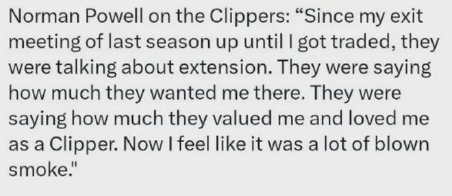 商业联盟,利益至上,所谓的承诺有时候根本不值一提。 所以NBA没有那么多的好聚好散,更多的是大家不愿撕破脸皮罢了。 还能说什么呢?就祝福快船和鲍威尔,在各自的征途都能有美好的未来。
